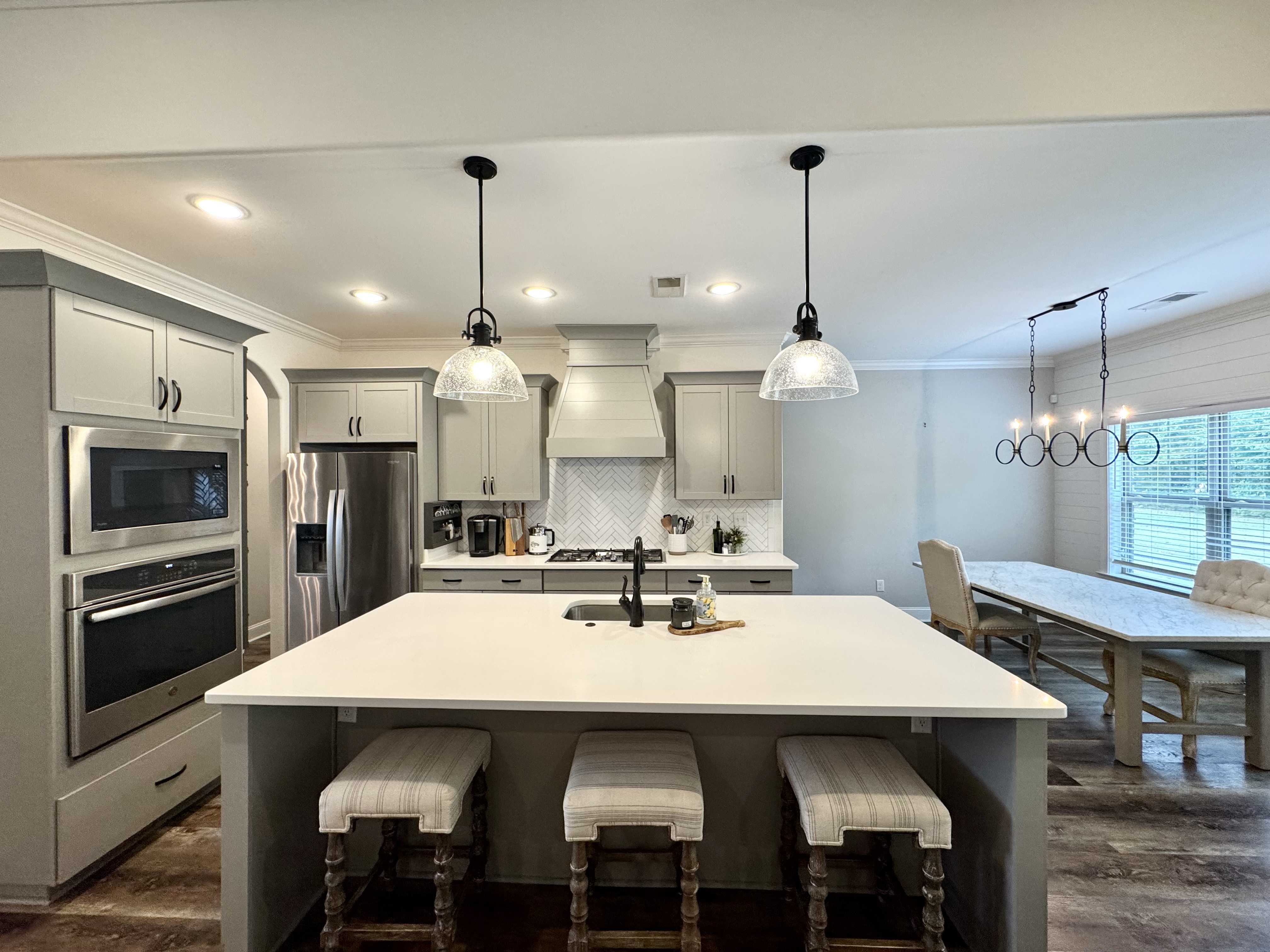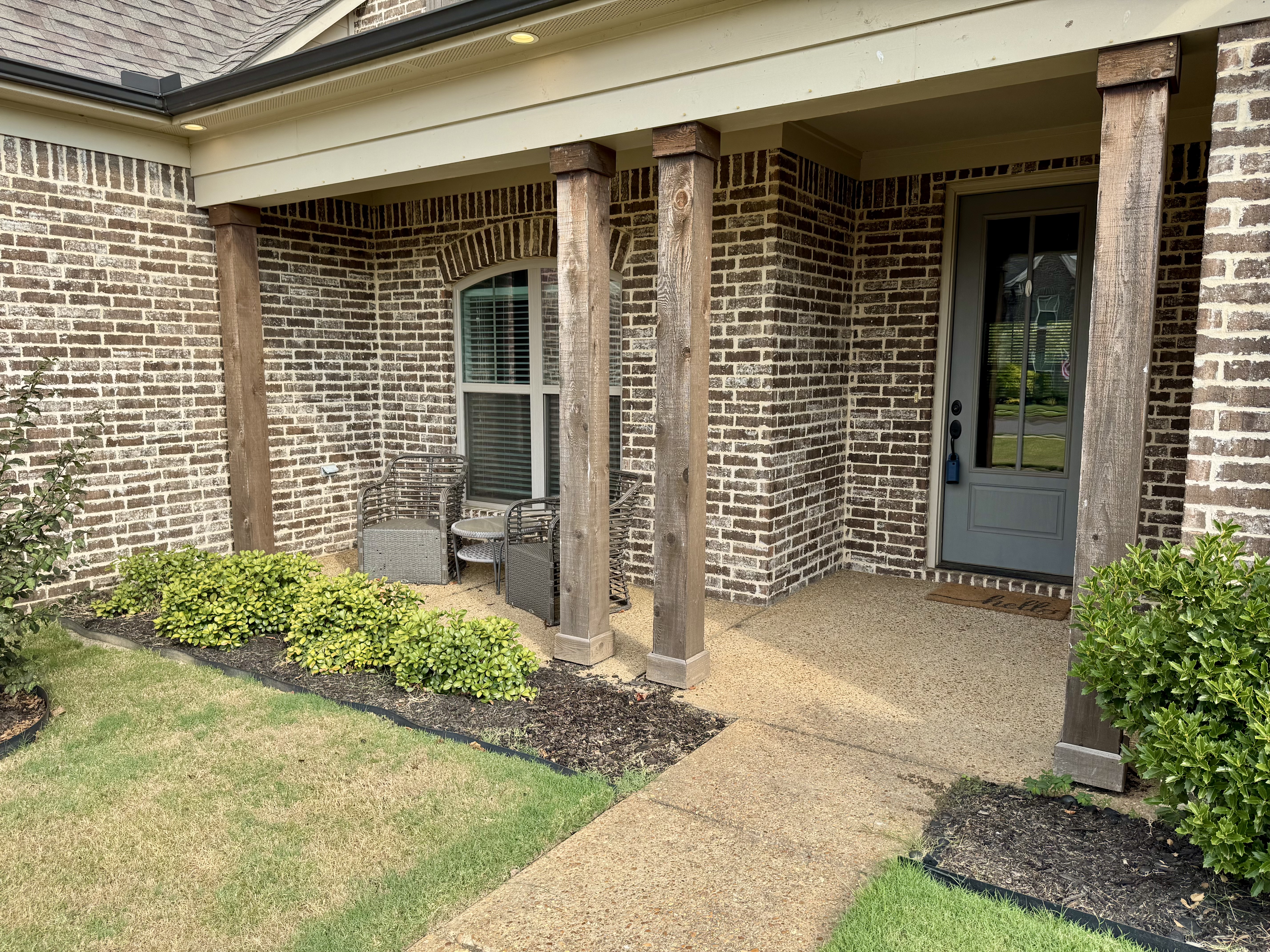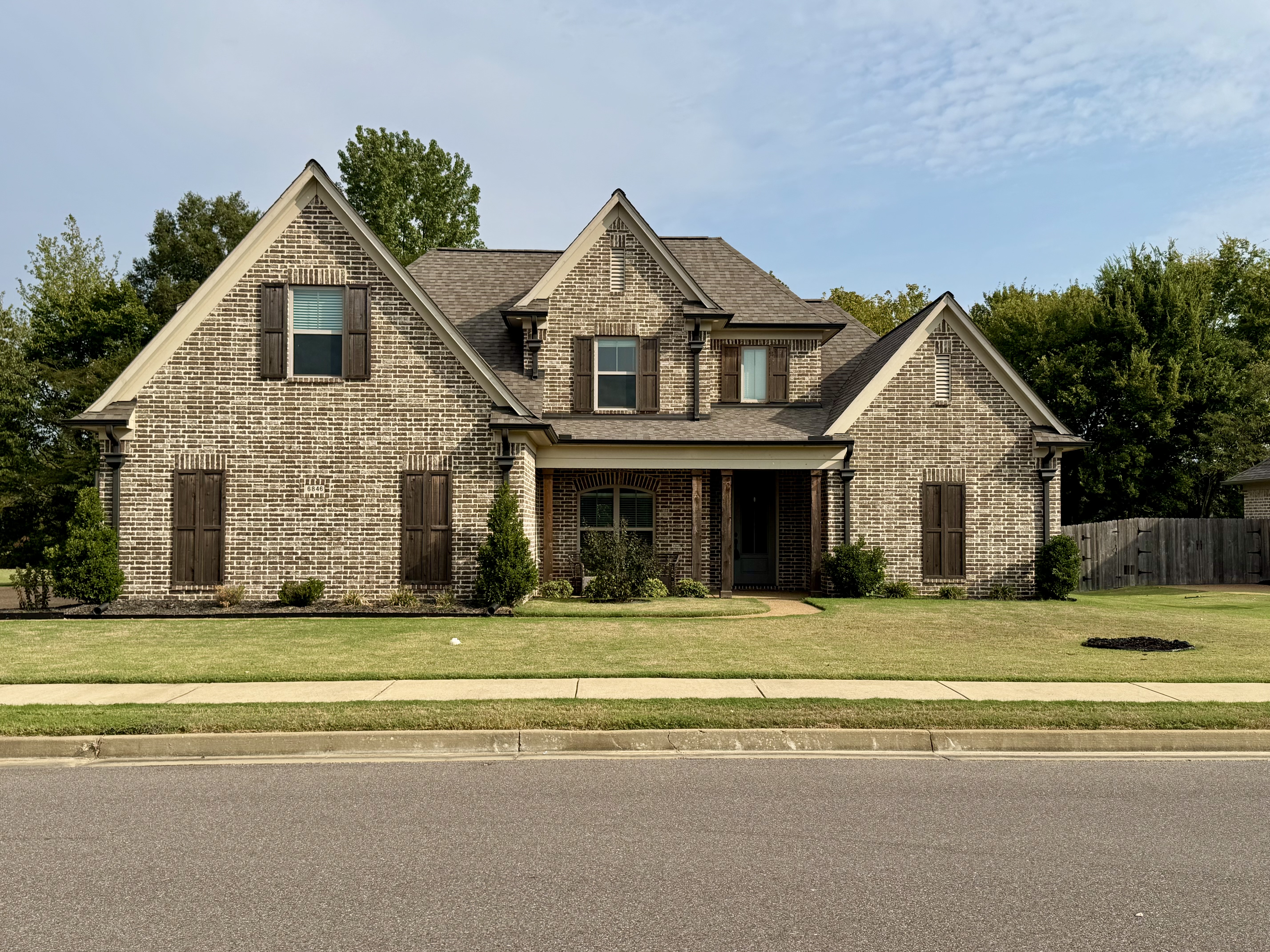Step into comfort and style with this spacious 5-bedroom, 3-bath home offering just over 2,600 sq ft. A welcoming front porch sets the tone, while inside you'll find an open design filled with natural light. The kitchen is a cook's dream with a generous island that seats four, gas cooktop, built-in microwave and oven, and a classic white tile backsplash. The living area is anchored by a striking brick fireplace and wood mantel, perfect for cozy evenings. This home provides both a formal dining room with wood beam accents and a casual breakfast nook. The primary suite is large enough for a king bed plus furniture, and the spa-like bath features dual vanities, a soaking tub set in front of a walk-in shower, and a roomy walk-in closet. Other highlights include cubbies with hooks at the garage entry, laundry with a folding counter, a tankless water heater, and a walk-in attic for storage. Outdoors, the covered back patio offers a peaceful view of nature. Lewisburg school is just outside the neighborhood. Community activities, holiday events, and a pool covered by the HOA fee make this neighborhood truly special. With I-269 only a minute away, commuting throughout the Mid-South is a breeze.