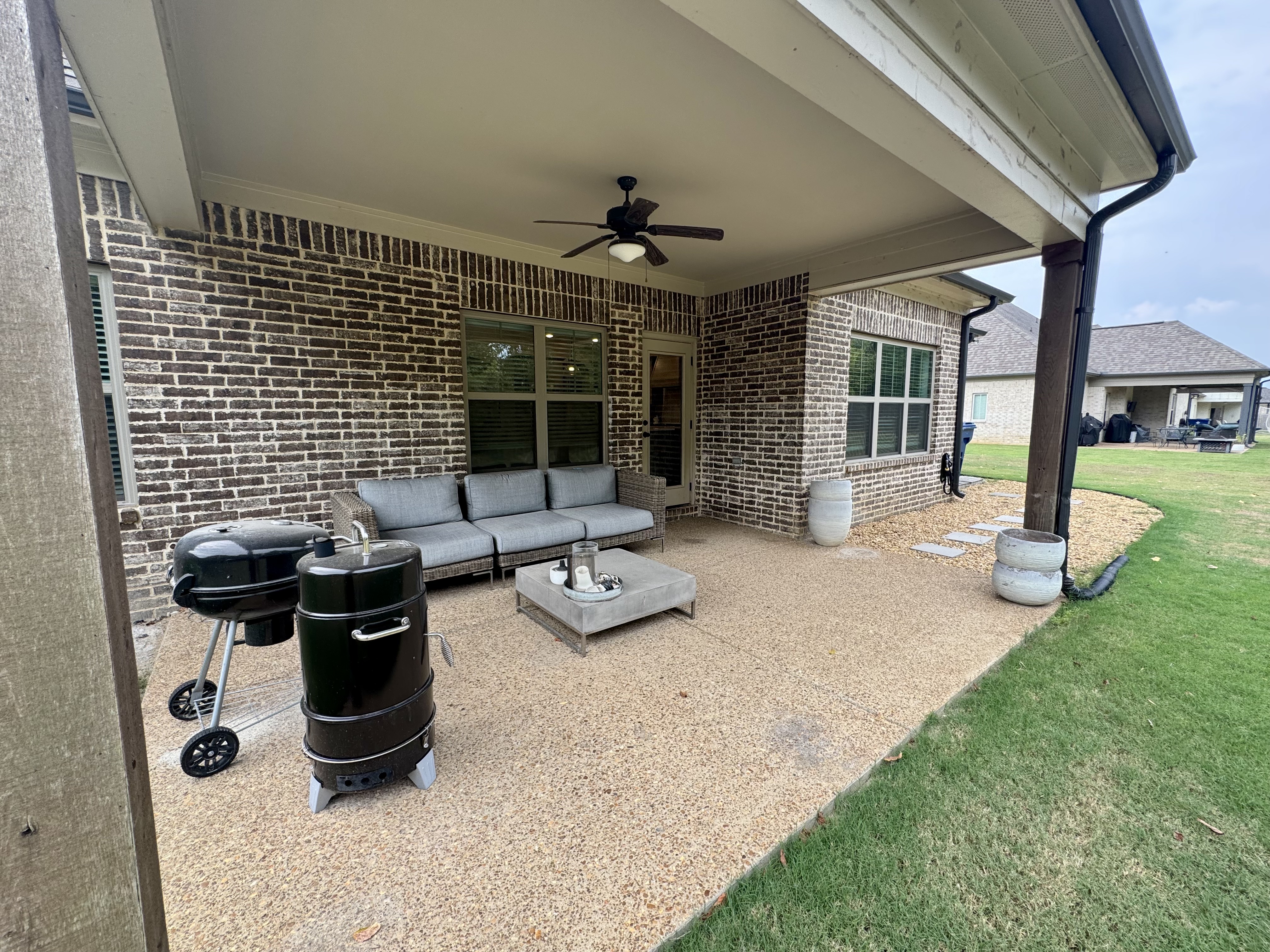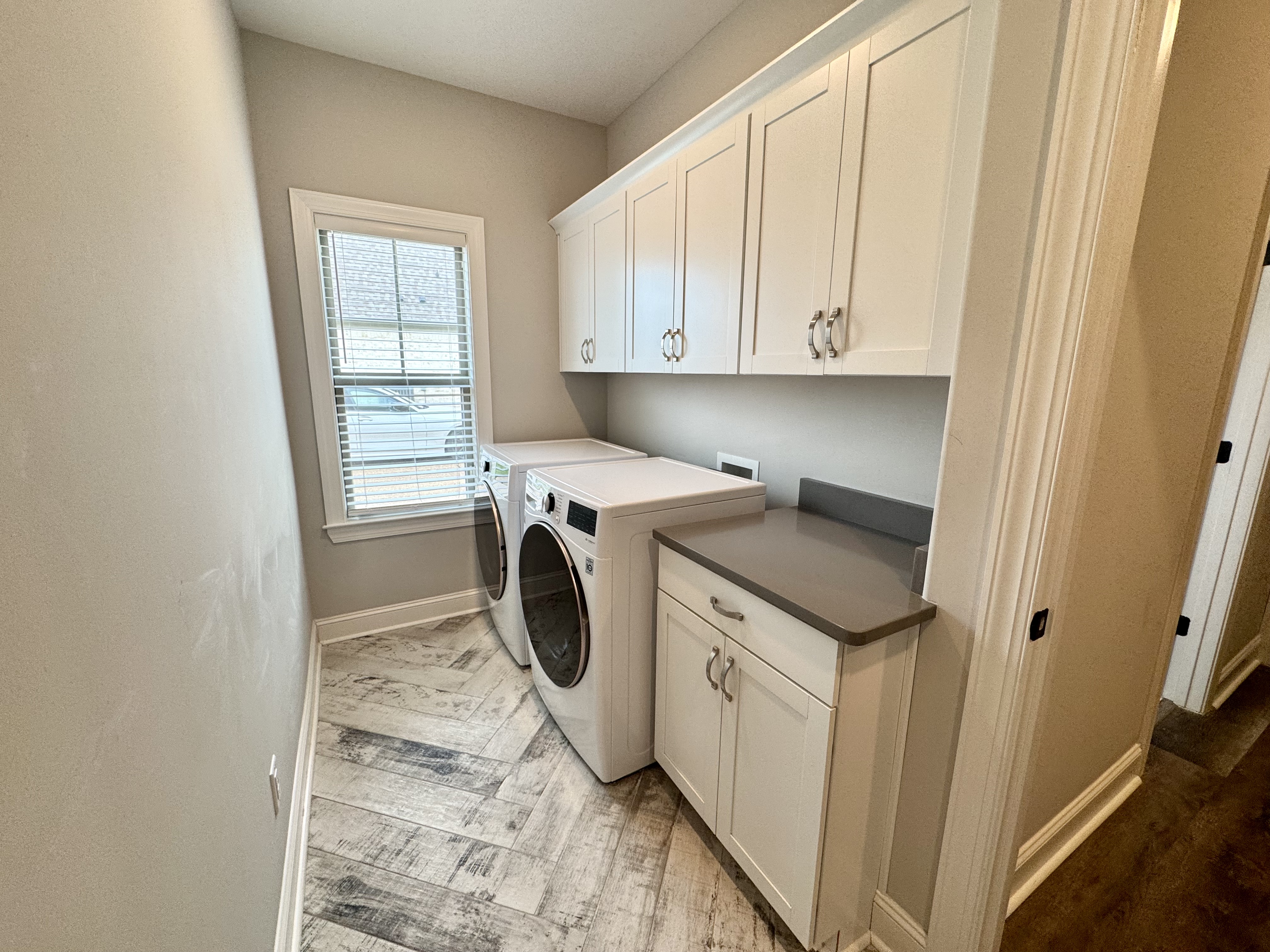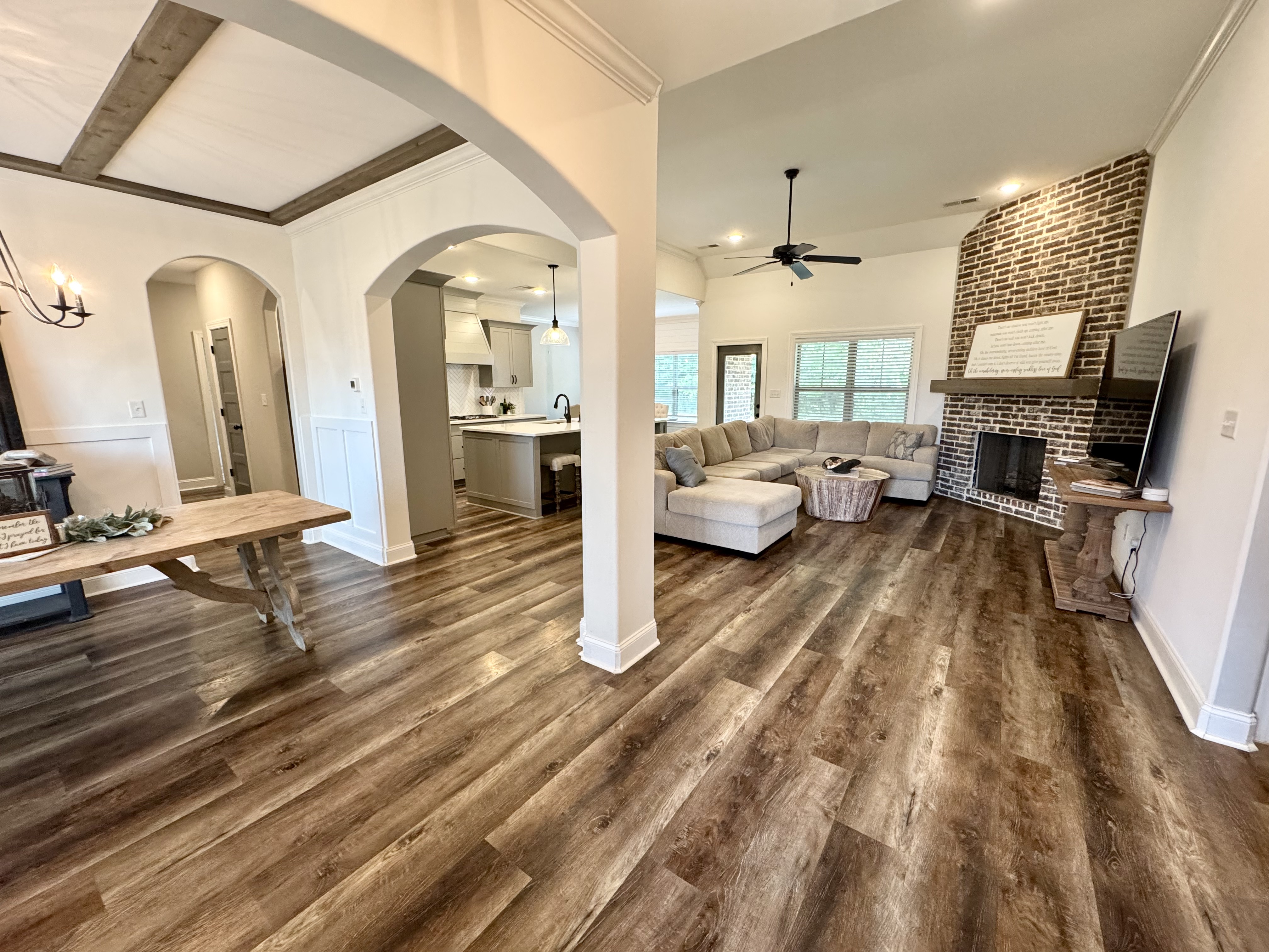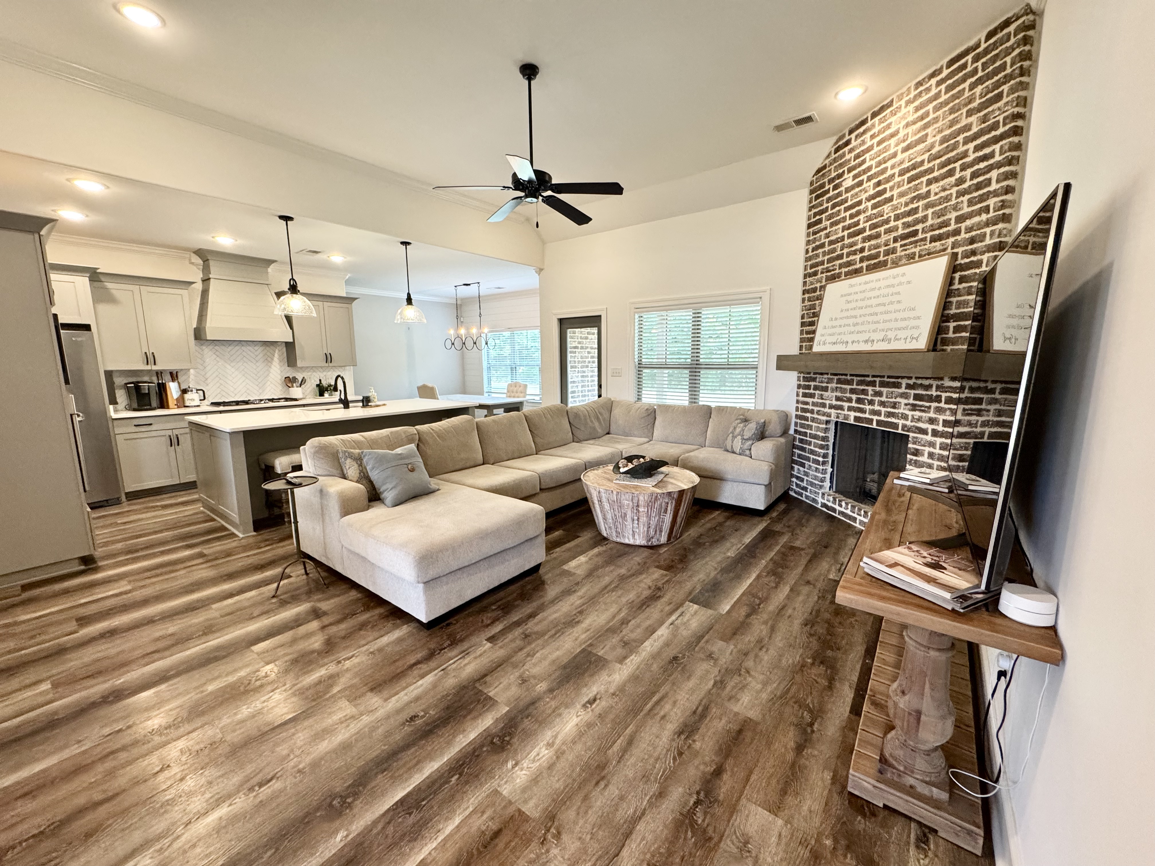 Step into comfort and style with this spacious 5-bedroom, 3-bath home offering just over 2,600 sq ft. A welcoming front porch sets the tone, while inside you'll find an open design filled with natural light. The kitchen is a cook's dream with a generous island that seats four, gas cooktop, built-in microwave and oven, and a classic white tile backsplash. The living area is anchored by a striking brick fireplace and wood mantel, perfect for cozy evenings. This home provides both a formal dining room with wood beam accents and a casual breakfast nook. The primary suite is large enough for a king bed plus furniture, and the spa-like bath features dual vanities, a soaking tub set in front of a walk-in shower, and a roomy walk-in closet. Other highlights include cubbies with hooks at the garage entry, laundry with a folding counter, a tankless water heater, and a walk-in attic for storage. Outdoors, the covered back patio offers a peaceful view of nature. Lewisburg school is just outside the neighborhood. Community activities, holiday events, and a pool covered by the HOA fee make this neighborhood truly special. With I-269 only a minute away, commuting throughout the Mid-South is a breeze.